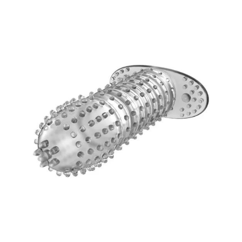 Fabricada con un material siliconado transparente y flexible, esta funda es extra suave al tacto y se adapta cómodamente a casi cualquier tamaño de pene. Su canal estrecho y grueso sostiene la erección, brindando mayor satisfacción y comodidad durante el juego íntimo.